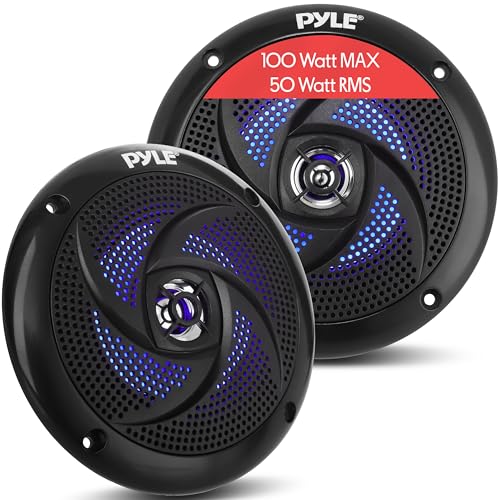 Pyle Waterproof Rated Marine Speakers - 4'' 2 Way Off-Road Vehicles & Weather Resistant Outdoor Audio Stereo Sound System w/LED Lights, 100W Power, & Low Profile Slim Style, Pair, Black