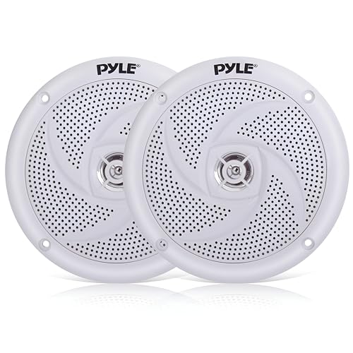 Pyle 4 Inch Dual Marine Speakers - Waterproof and Weather Resistant Outdoor Audio Stereo Sound System with Polypropylene Cone, Cloth Surround and Low Profile Design - 1 Pair (White)