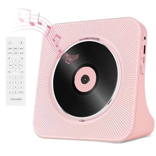Bärbar CD-spelare Bluetooth, CD spelare Radio med högtalare, CD-spelare med USB, AUX In/Out, Hifi Stereo CD-spelare i Rosa