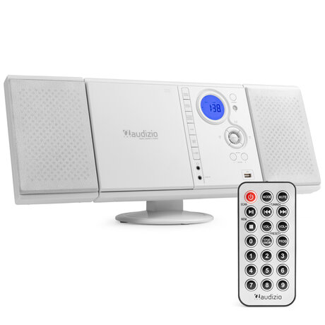 Audizio Nimes Bluetooth stereoset med CD-spelare, USB mp3-spelare och radio - 50W - Vit, Radio stereo HiFi-system med USB och CD-spelare