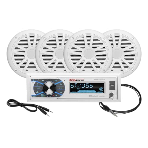 BOSS Audio Systems MCK632WB.64 Marine Stereo Paket - Bluetooth, - - ingen CD DVD MP3 USB WMA AM FM-radio, 16,5 cm högtalare, antenn, väderbeständig