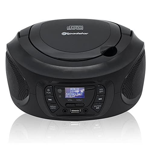 Roadstar CDR-375D+/BK bärbar radio CD-spelare, spelare CD-MP3, CD-R, CD-RW, Radio DAB/DAB/FM, USB, AUX-IN, Stereo, fjärrkontroll, hörlursutgång, svart