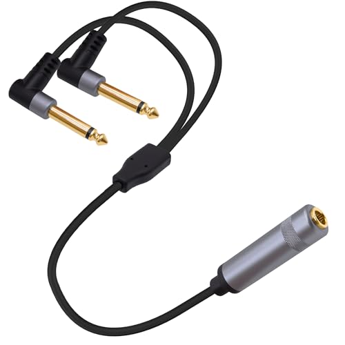 YARCHONN 6.35mm 1/4 Splitter Audio Y-kabel 1/4 tum TRS Stereo kvinnlig till dubbel Mono TS manlig rätt vinkel ljudomvandlare adapterladd för instrument förstärkare mixer gitarrinstrument-30cm / 11.8in