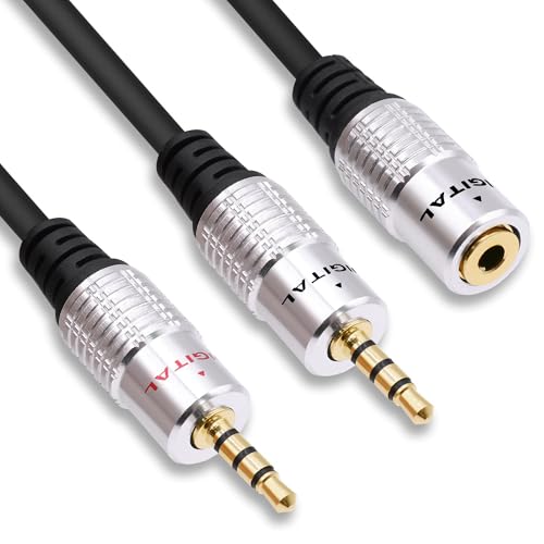 DuKabel Headset splitter 30 cm nylon 3,5 mm 4-polig TRRS jackkontakt till två 4-polars TRRS-uttag (audio+mic) stereo audio Y splitter kabel aux förlängning adapter kabel – toppserien
