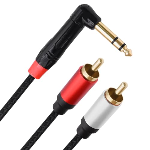 YARCHONN 6,35 mm TRS till 2 RCA Y-ljudkabel 90 grader 1/4 tum TRS till dubbel RCA Y splitter kabel stereo högervinkel kontakt kontakt adapter ljudkabel för DVD-högtalare förstärkare-0,5M/1,64F