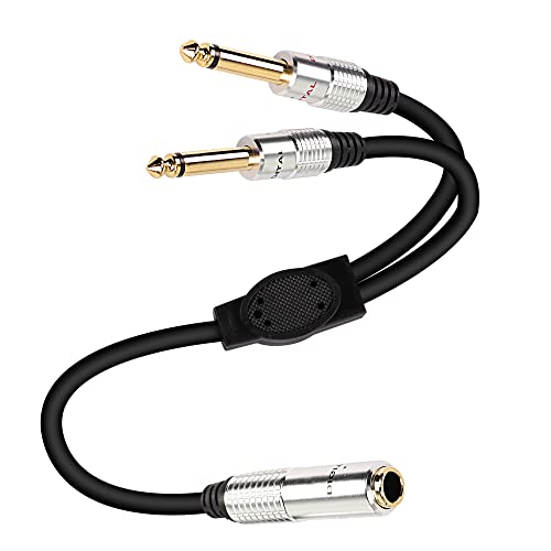VITALCO 6,35 mm uttag Y splitter stor 1/4 tum TRS stereo hona till 2 x hane Mono TS ljudkabeladapter