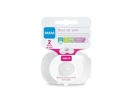 MAM Bröstspetsar – 2-pack silikonbröstremsor (storlek M, 20 mm) – speciellt hudvänligt amningstillbehör med steriliseringsbox