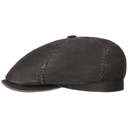 Stetson McCook Vintage Läderkeps Damer/Herrar - flat cap keps med skärm, foder Vinter Höst Vår Sommar Sommar-Vinter - M (56-57 cm) svart