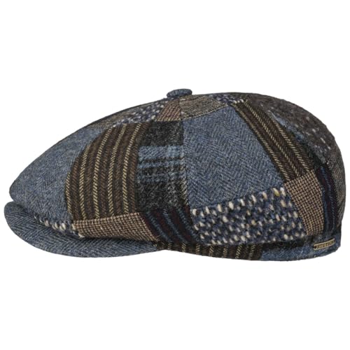 Stetson Hatteras Classic Patchwork Flat Cap Herrar - Made in the EU newsboykeps keps med skärm, foder Vinter höst-vinter - S (54-55 cm) brun-blå