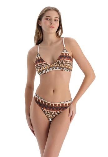 Trendyol Dam Kvinna Stickad Bikini Topp Badkläder, Brun – flerfärgad, 42 SE