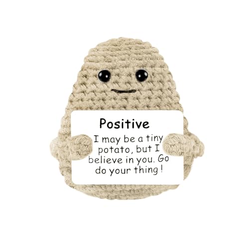 Mini rolig stickad ull potatisleksak med positivt kort - kreativ söt virkad docka uppmuntra present till vänner, fester, juldekoration och uppmuntran