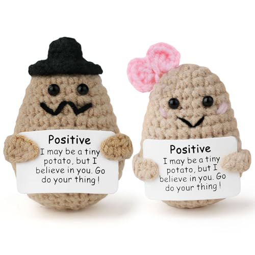 Aolso Rolig positiv sticknålsdocka, 2 st, stickad docka med positivitetskort, lyckogåva, rolig gåva, fickleksak, födelsedagspresent, festdekoration (potatis)