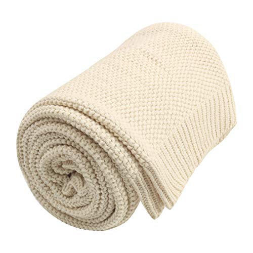 PiccoCasa 100% bomull stickad filt full storlek, solid lätt dekorativ filt och filtar, mjuk stickad filt för soffa, beige 178 cm x 198 cm