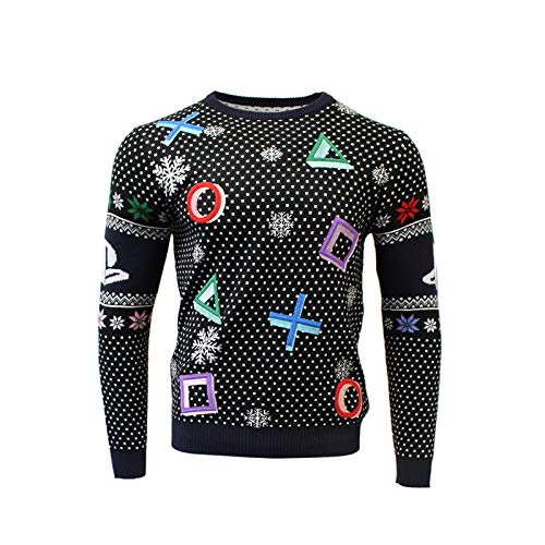 Numskull Playstation Symboler svart officiell unisex stickad tröja, XXL – ful ny jultröja gåva, Playstation-symboler svart, XXL