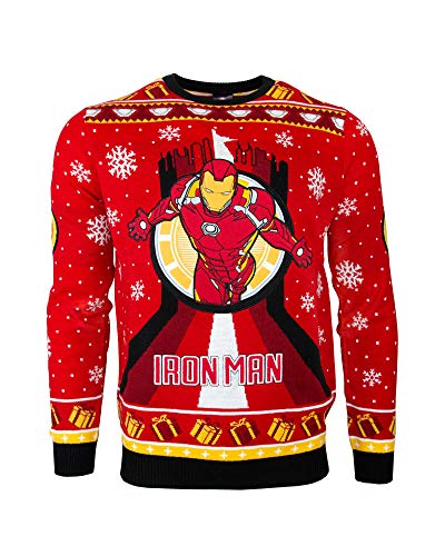 Officiella Iron Man jultröjor för män eller kvinnor – fula nya presenter jultröja, officiellt licensierade Marvel Comics unisex stickad tröjdesign, Iron Man, L