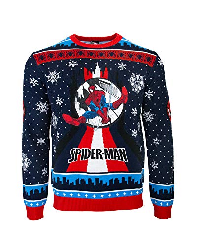 Officiella spindelmannen jultröjor män eller kvinnor – fula nya presenter jultröja, officiellt licensierade Marvel Comics unisex stickad tröjdesign, Spindelmannen, L