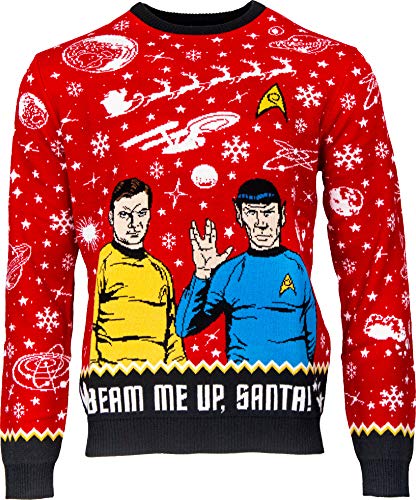 Numskull Unisex officiell Star Trek 'Beam Me Up, Santa!' stickad jultröja för män eller kvinnor – ful ny tröja gåva, Star Trek Beam Me Up Santa, XXS