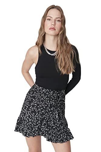 Trendyol Kvinnors svart blommigt mönster volym stickad kjol, XL