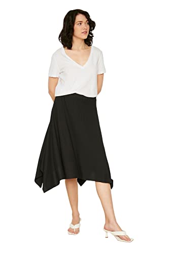 Trendyol Kvinnors svart asymmetriskt mönster midi stickad kjol, S