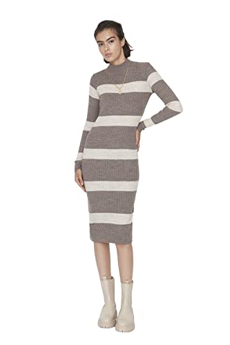 TRENDYOL Stickad midiklänning för kvinnor, A-linje, normal passform, stickad klänning, Beige, S