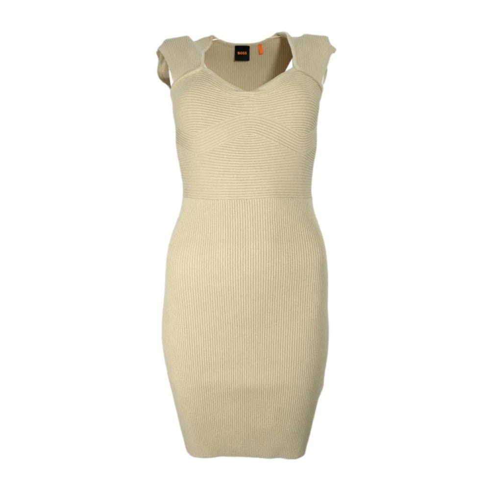 Hugo, Klänningar , Dam, S, Räfflad Stickad Klänning i Beige