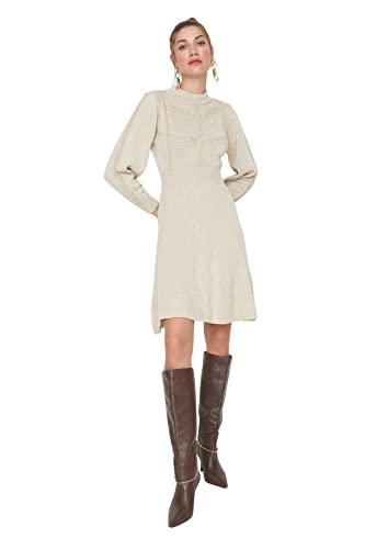 Trendyol Dam Dam Anpassad Figurformad Hög hals Stickad Klänning, BEIgE, S