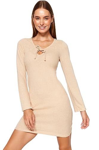 Trendyol Dam mini figursydd stickad klänning, BEIgE, M