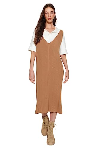 Trendyol Kvinnors linje vanlig passform stickad klänning dam midi A-line vanlig passform stickad klänning, Beige färg, XS
