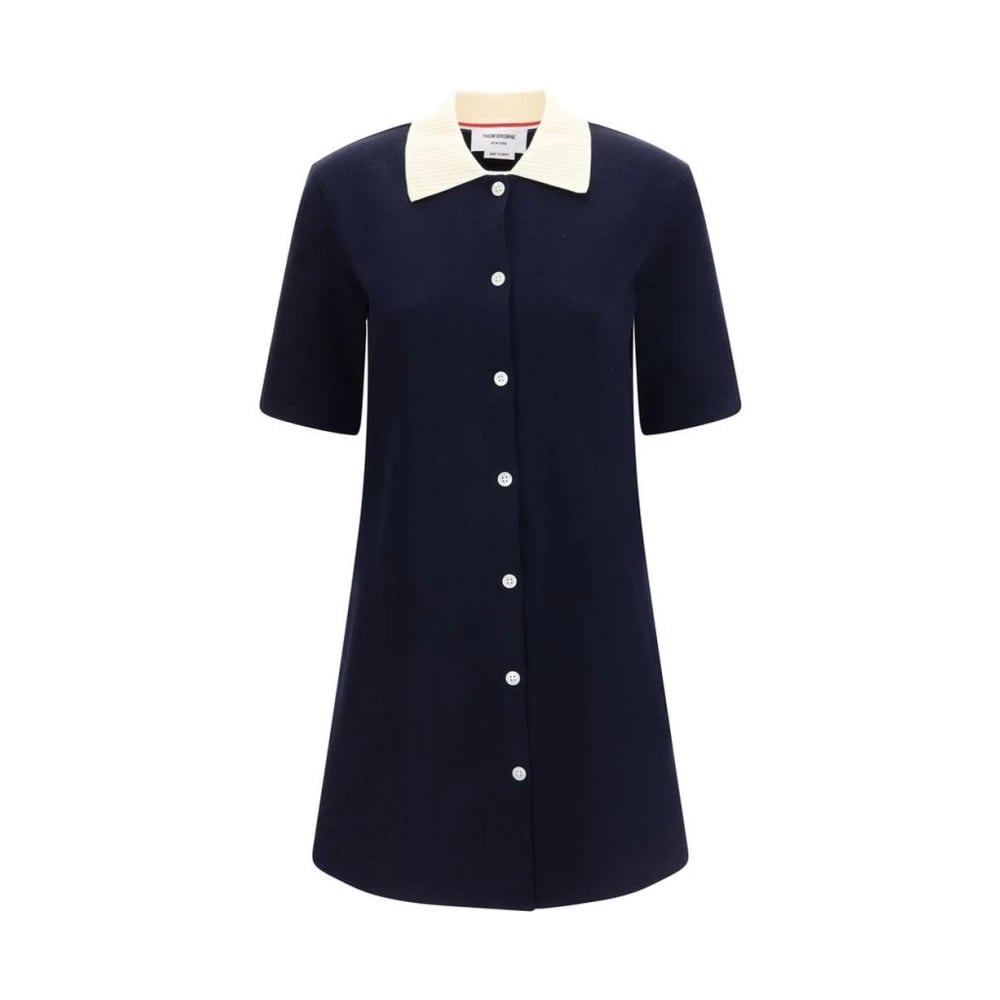 Thom Browne, Klänningar , Dam, M, Bomull, Räfflad Stickad Polo Klänning med Knapp
