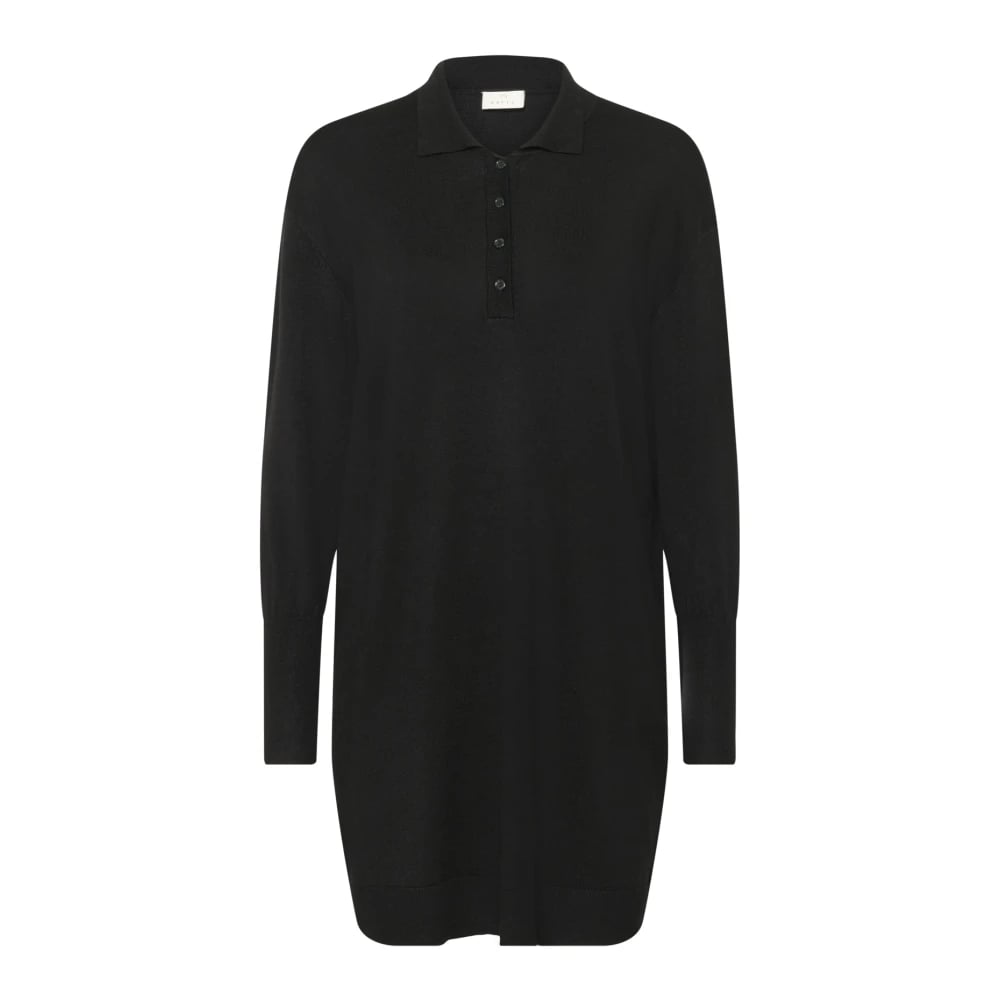 Kaffe, Klänningar , Dam, S, Nylon, Svart Djup Stickad Polo Klänning