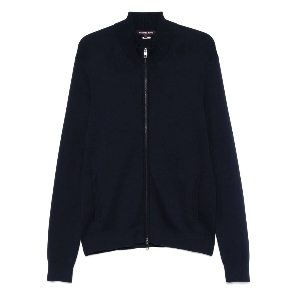 Michael Kors, Stickade Tröjor , Herr, 2Xl, Bomull, Blå stickad cardigan med dragkedja