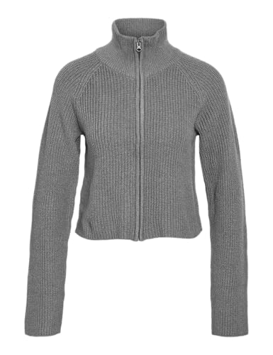 NOISY MAY Nmdara L/S stickad kofta med dragkedja FWD Noos, Medium grå melerad, M
