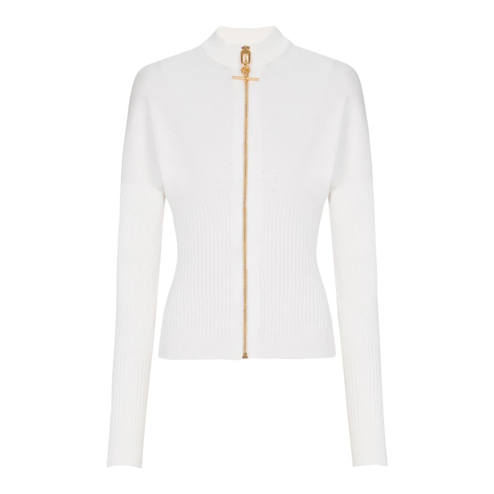 Balmain, Stickade Tröjor , Dam, L, Polyester, Stickad cardigan med dragkedja