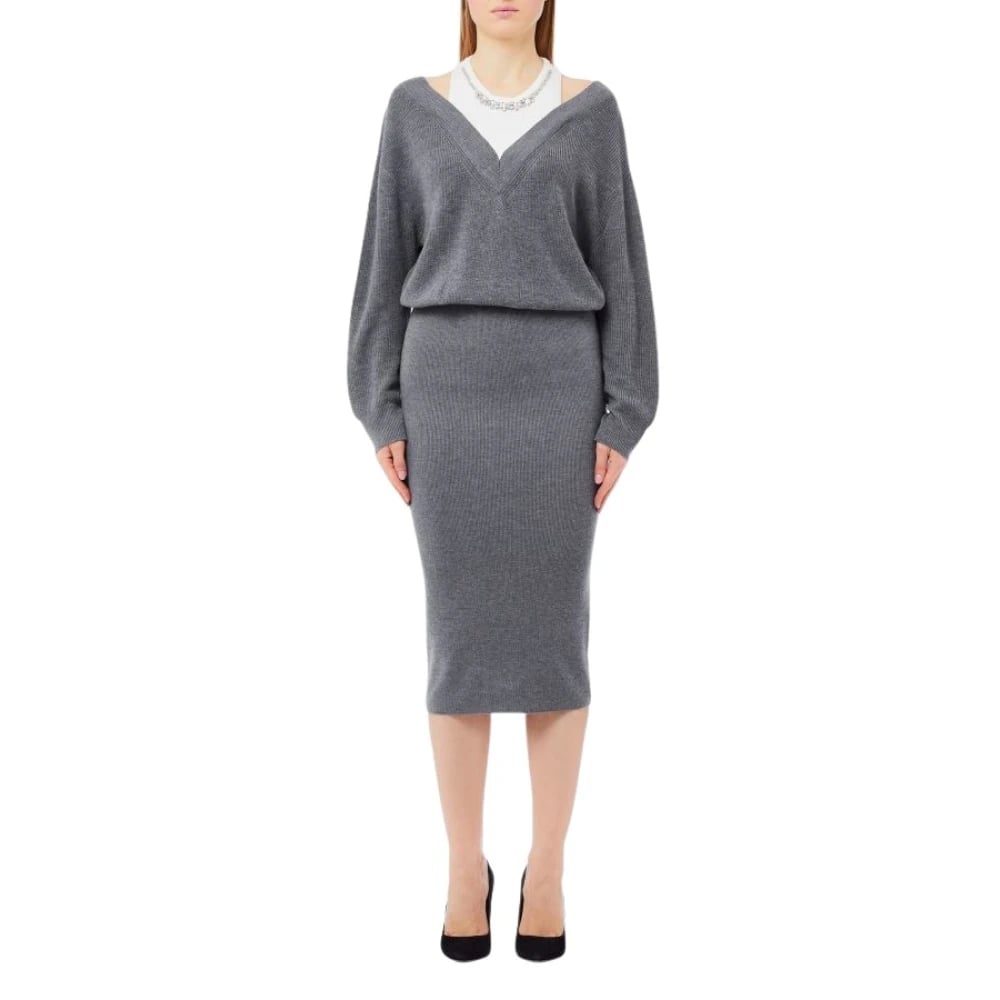 Twinset, Klänningar , Dam, S, Stickad midiklänning med vågiga kanter