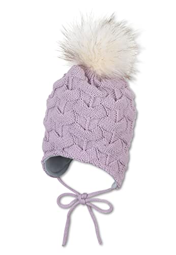 Sterntaler Stickad mössa för bebis, flickor, stickad mössa med pompom, lila, 45