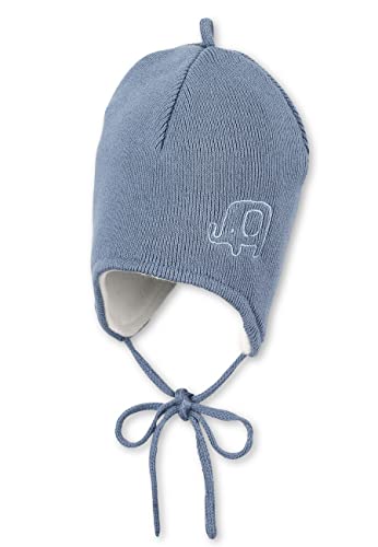 Sterntaler Baby pojkar stickad mössa baby GOTS stickad mössa dragkedja mössa – baby stickad mössa – av bomull med knytband – medelblå, 39, Mellanblå, 39