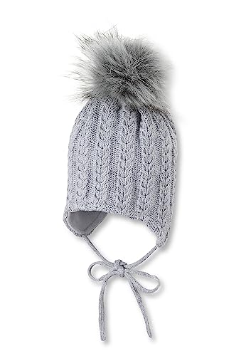Sterntaler Unisex barn stickad mössa baby tofs mössa stickad med öronlappar, Rökgrå, 47