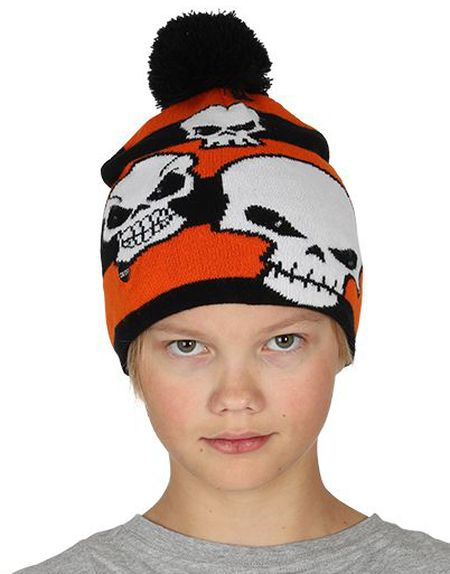 Stickad Mössa Med Tofs Och Dödskallar För Barn