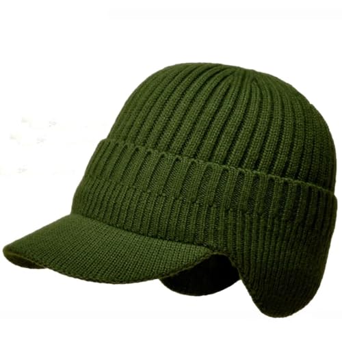 Rayson Vintermössa herr dam stickad mössa vinter varm mössa med öronlappar unisex mössa för män kvinnor stickad visir mössa höst vinter utomhus, Grön, one size