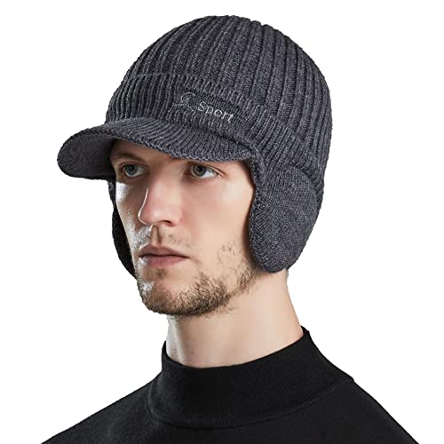 YAMEE Vintermössa för män, stickad mössa, vintermössa, stickad mössa med skärm, mössa, toppmössa med öronlappar, herr öronskydd, 9125/mörkgrå, En Storlek