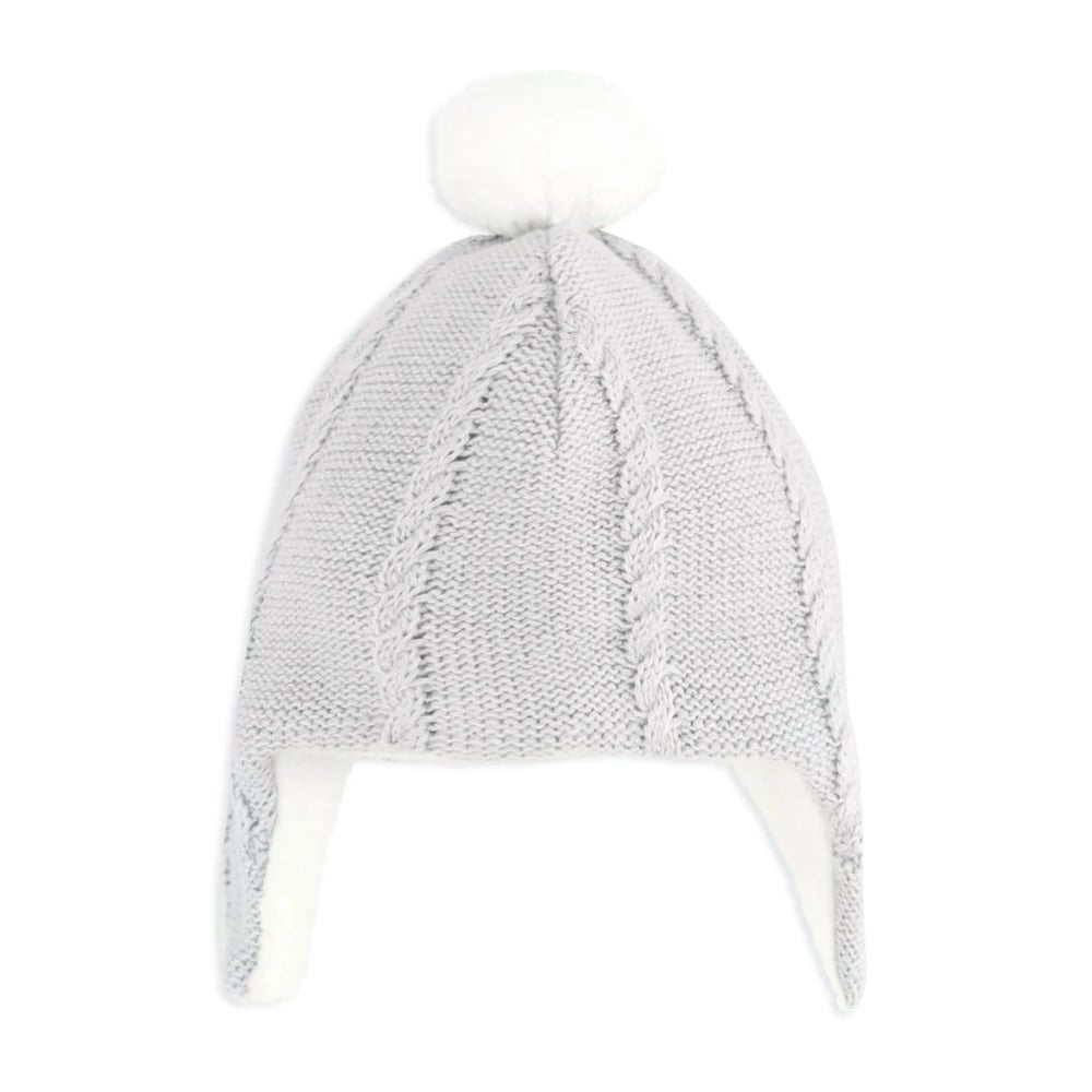 Tartine et Chocolat, Accessoarer , unisex, ONE Size, Grå stickad mössa med tofs och öronlappar