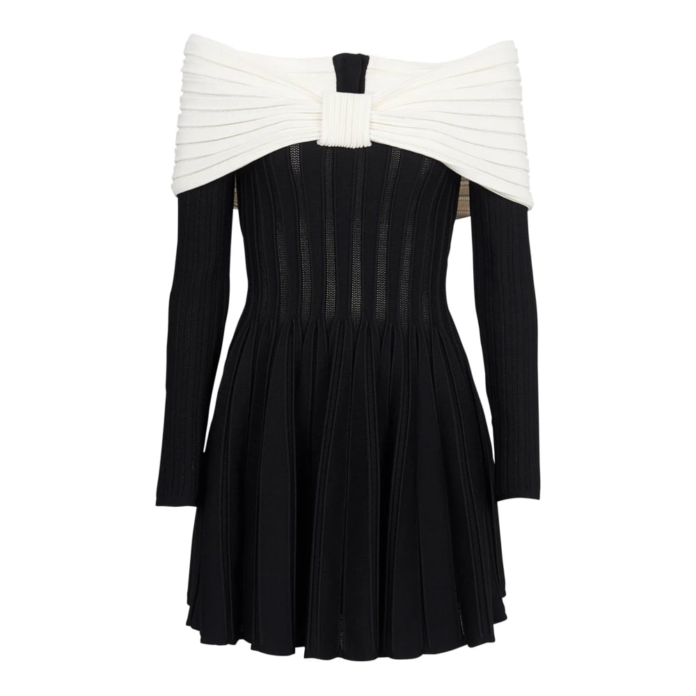 Balmain, Klänningar , Dam, 2Xs, Polyester, Off-Shoulder Stickad Miniklänning