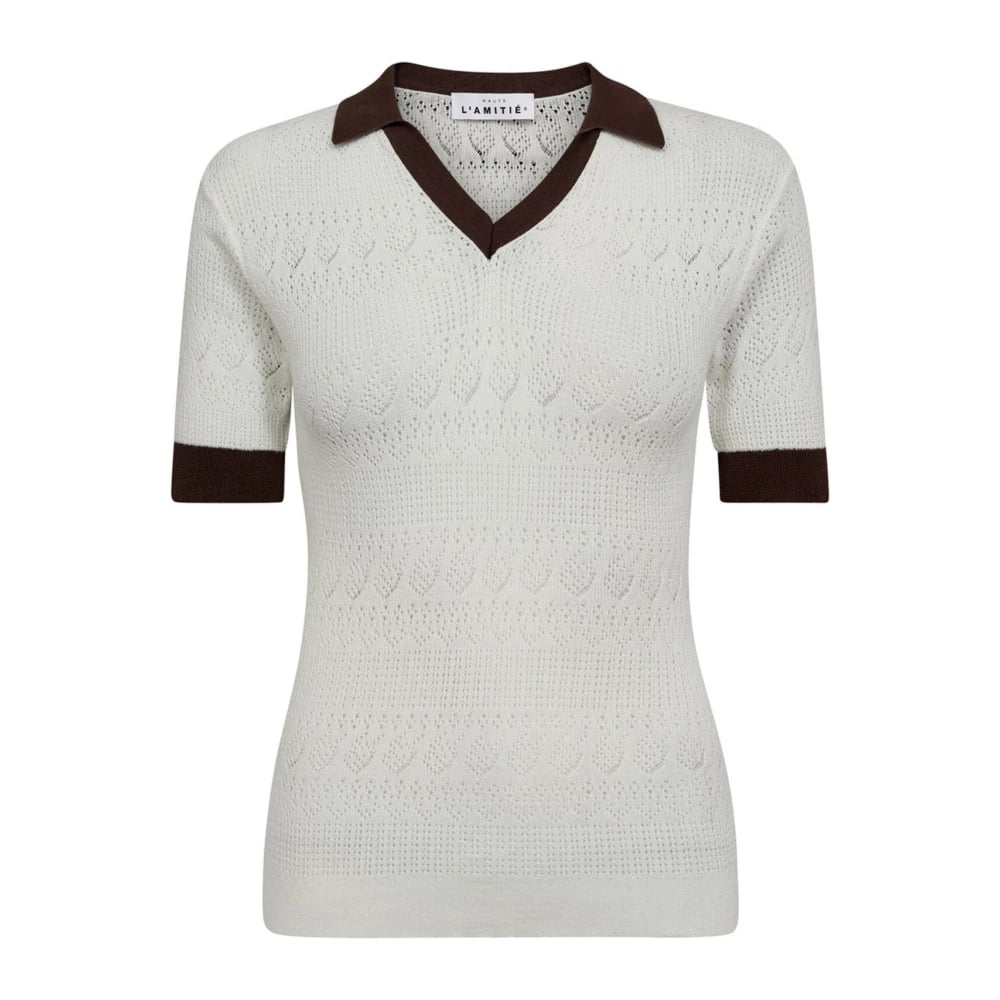 Haute L'Amitié, Stickade Tröjor , Dam, M, Bomull, Off-White Pointelle Team Stickad Tröja