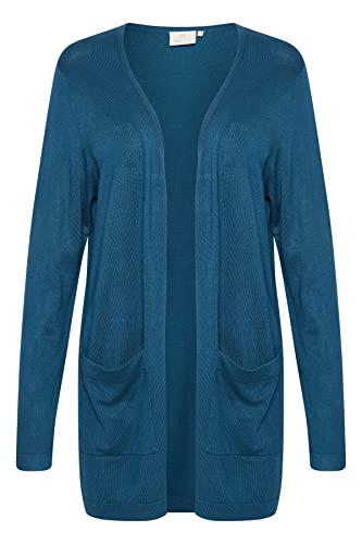 KAFFE Kvinnors kofta lång ärm höftlängd fickor stickade öppna främre pullover dam, Legion Blue, M