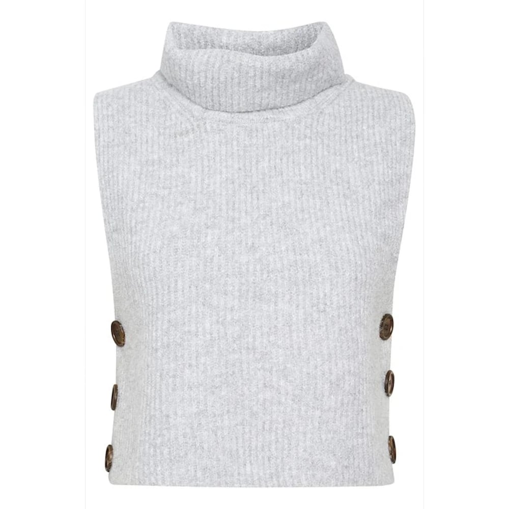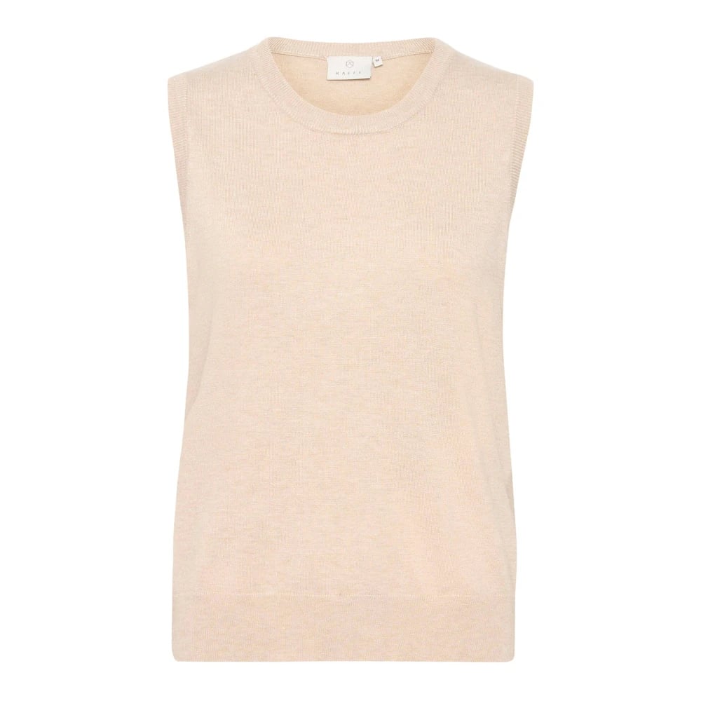 Kaffe dam slipover stickad ärmlös rund hals normal passform hip längd, Fjäder grå melange, S