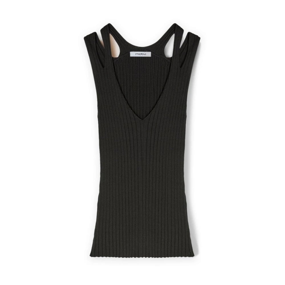 Motivi, Toppar , Dam, XS, Denim, Stickad Top med Utskärning