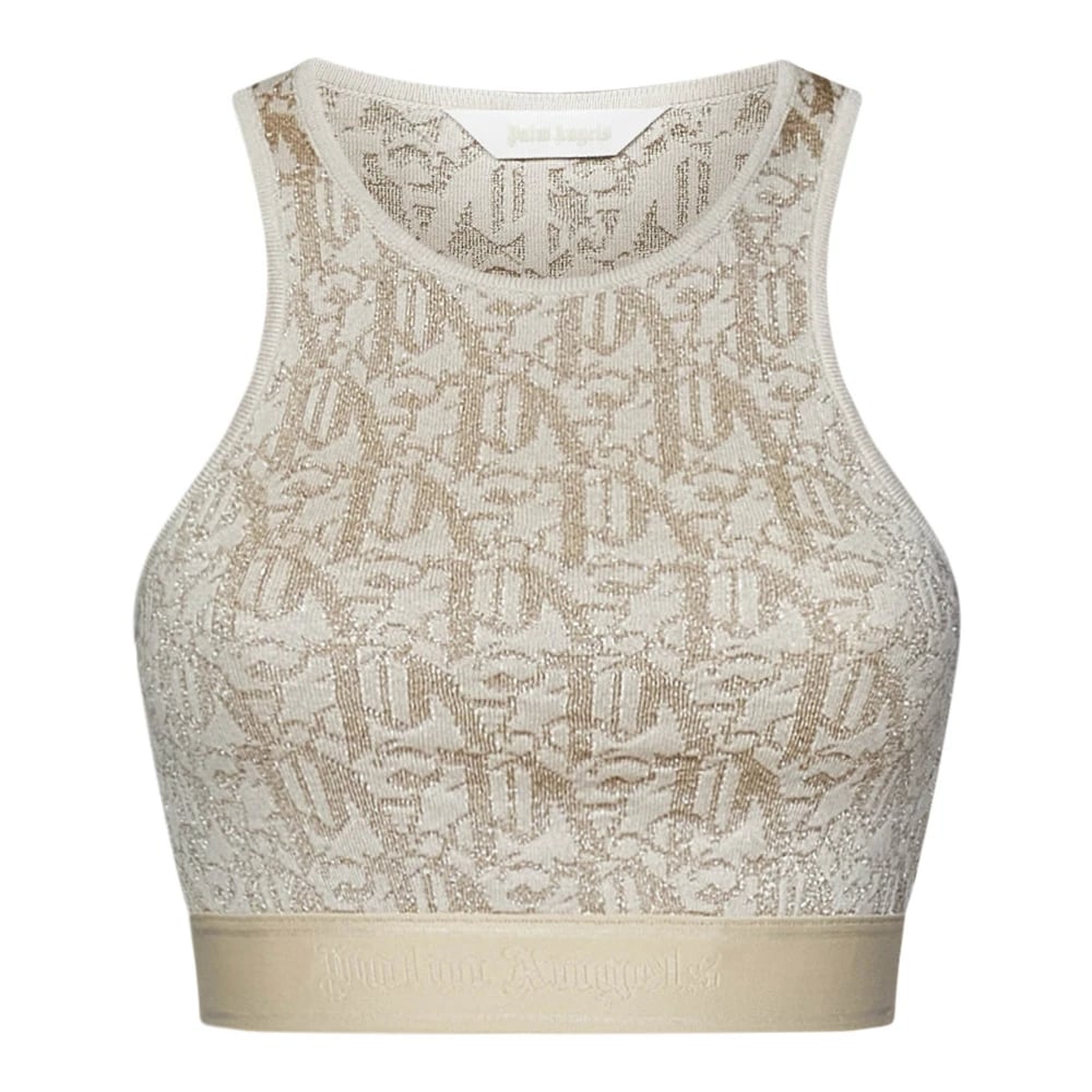 Palm Angels, Toppar , Dam, S, Polyester, Stickad Cropped Top med Monogram