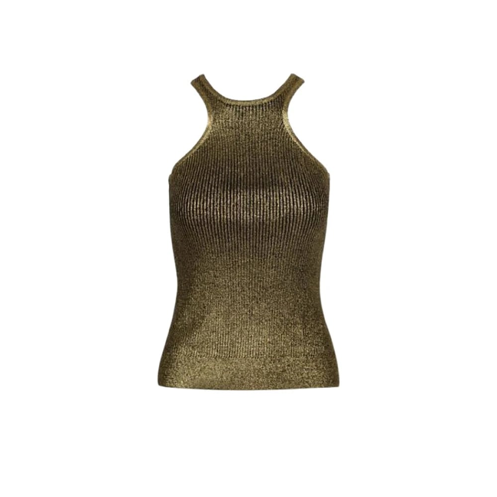 Barbara Bui, Toppar , Dam, L, Bomull, Metallic Stickad Tank Top