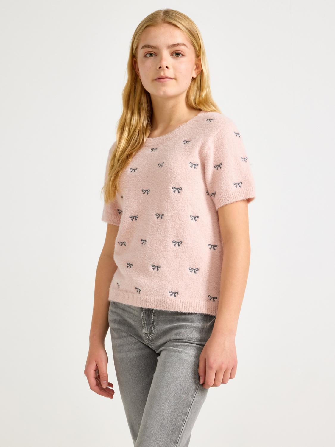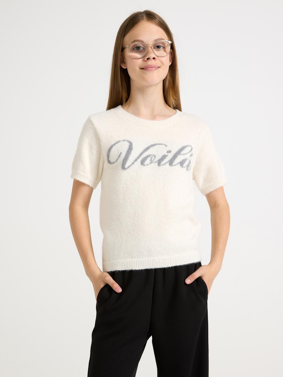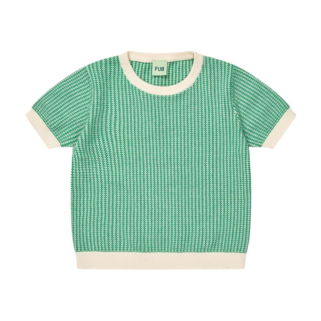 FUB Stickad Kortärmad Topp Ecru/basil 130 cm Grön 130 cm unisex