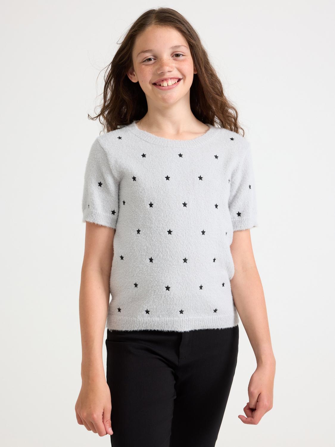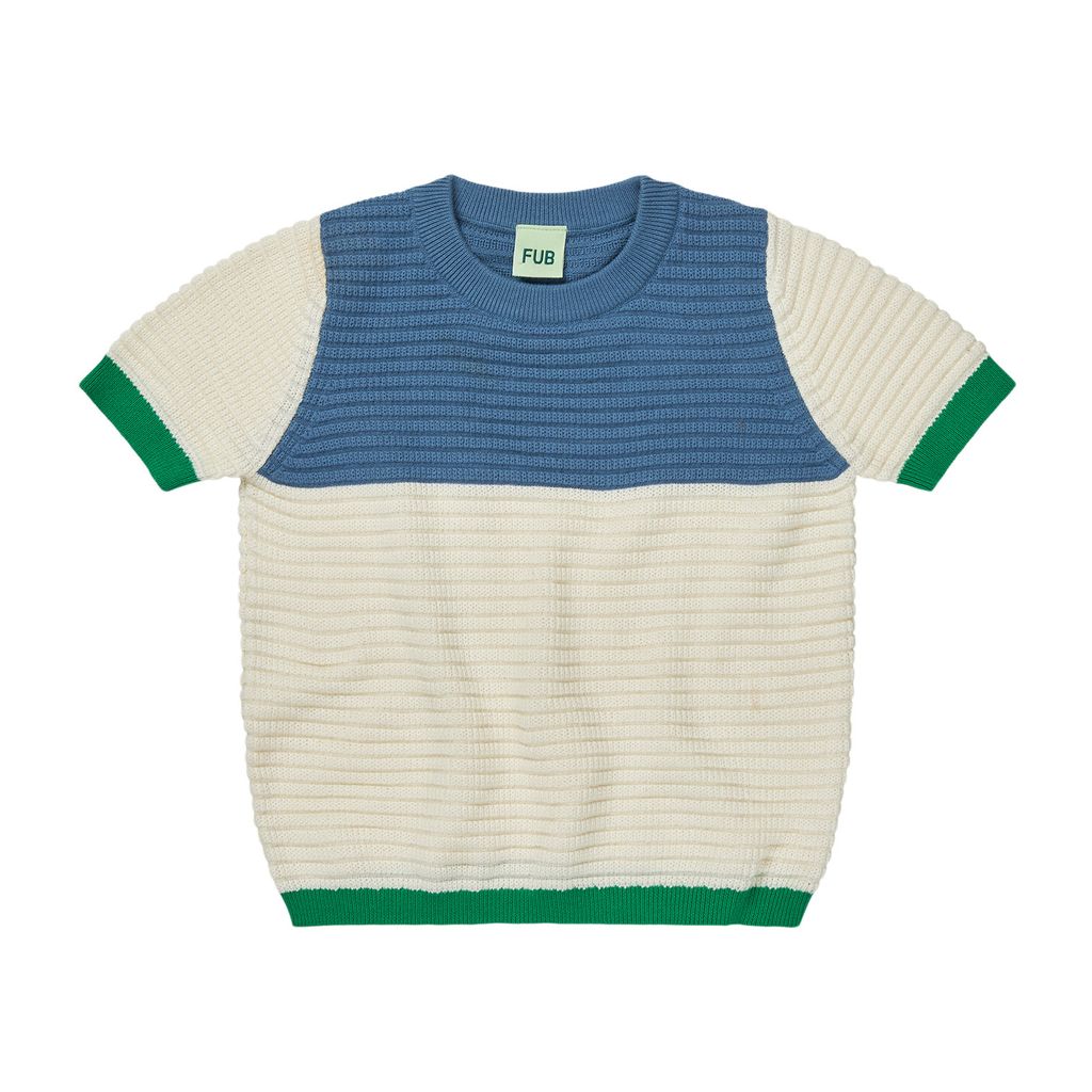 FUB Stickad Kortärmad Topp Ecru/washed Indigo 120 cm Blå 120 cm unisex